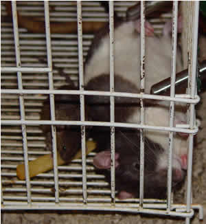 Six months later a prime opportunity presented itself when my neighbor informed me that her rat had babies. At that point I adopted my first two rats from their horrible fates as snake food. I adopted Chewie, a boy, and Nezumi a girl. The only reason I adopted a boy is because all the girls were fed and I wanted to get a girl because I believe female rates make better pets because of their energy, plus they were the two that had the best personalities and they came up to me to say hi. Chewie was neutered and I proceeded to bond with them and teach them tricks and stuff.